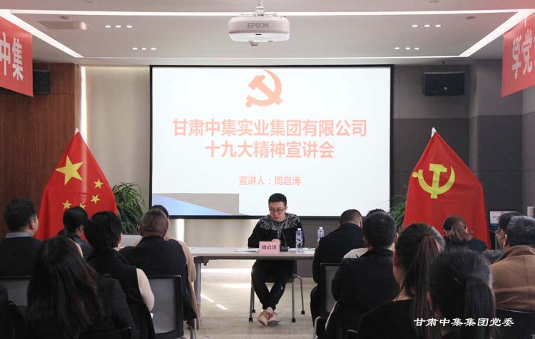 11月23日下午,甘肅中集實業(yè)集團有限公司黨委在公司黨建活動室開展黨的十九大精神專題教育活動,公司黨委書記、董事長周啟濤代表集團公司黨委,以《深入學習黨的十九大精神,建設美好幸福新蘭州》為主題,向公司全體黨員、入黨積極分子、集團公司各版塊及各部門負責人宣講黨的十九大精神。